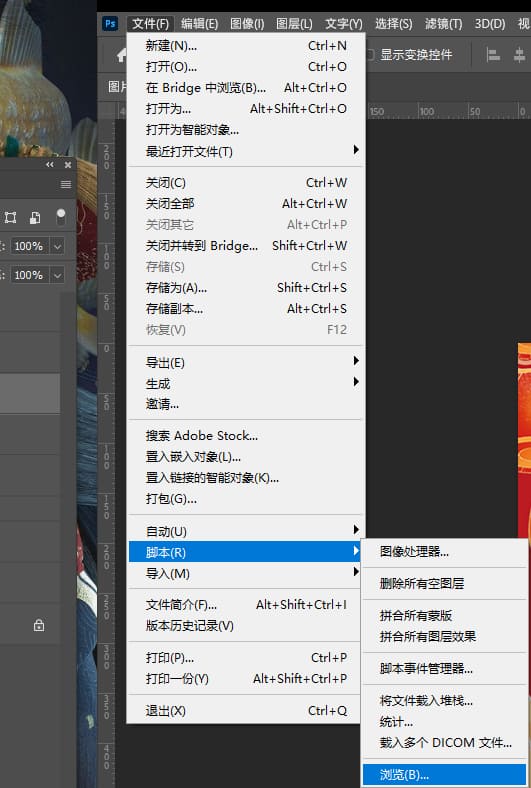 打开巨大的PSD文件,【文件】–【脚本】–【预览】,选择刚刚下载好的jsx文件,等一会再保存,发现PSD已经变小了