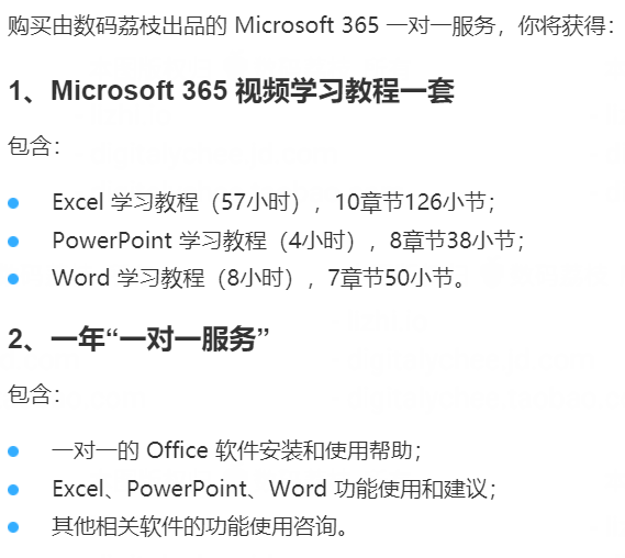购买拼车除了享受一年 Microsoft 365 服务,还将获得价值 50 元的 Office 视频教程和一年 1 对 1 Office 软件安装和使用帮助,还不赶快上车!