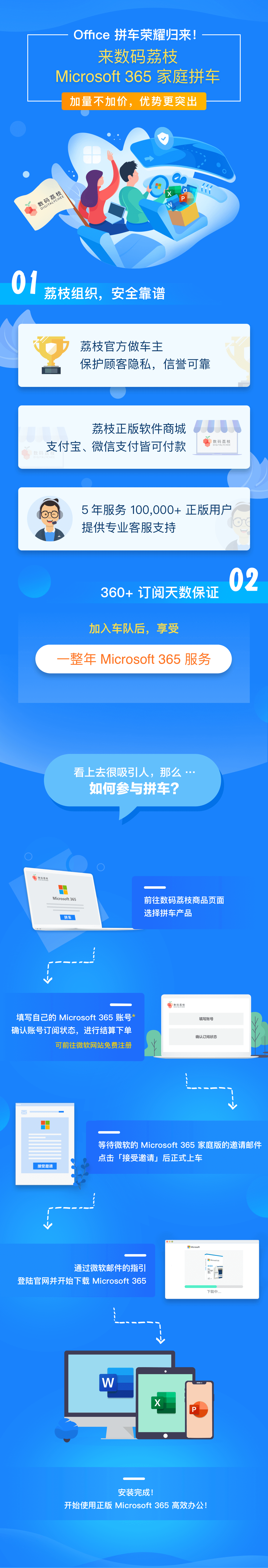 在「数码荔枝」拼车不仅安全有保障,从即日起至 5 月 29 日 618 预售期间 ,仅需 84 元即可享受一年 Microsoft 365 服务,立即上车!