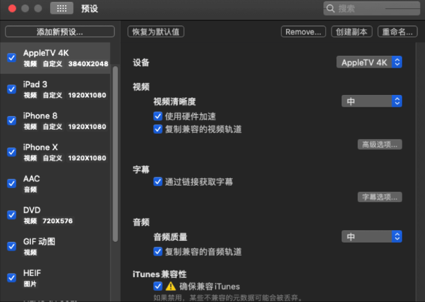 Permute 支持硬件加速,可以调用苹果 T2 芯片进行 HTVC 编码,发挥 Mac 的最佳性能,有效提升转换速度。