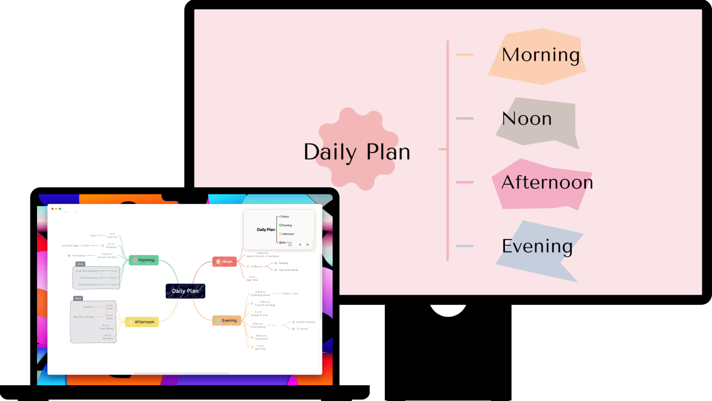 演说模式是 Xmind 的特色功能,自动生成优雅的版式和转场动画,让你像幻灯片一样演示思维导图。