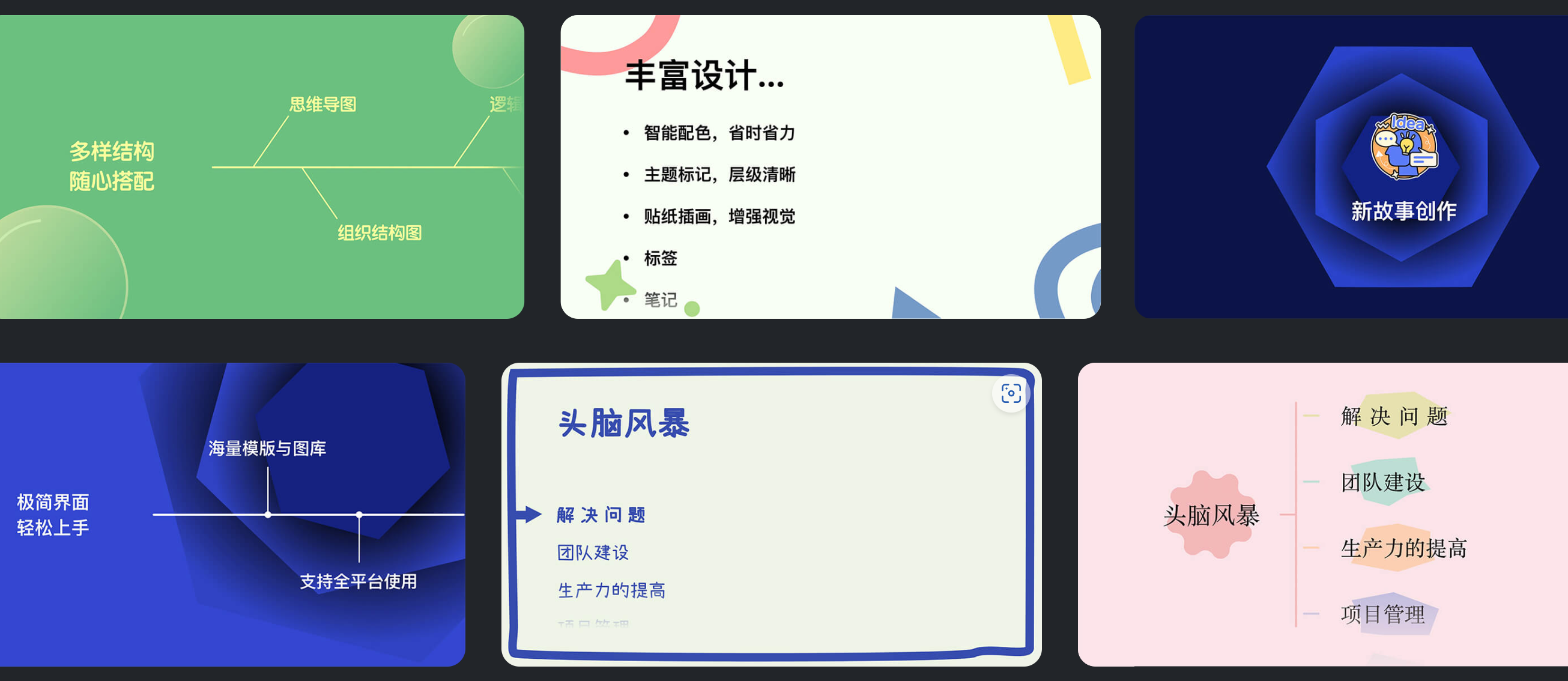 - 智能导图模板、配色方案;