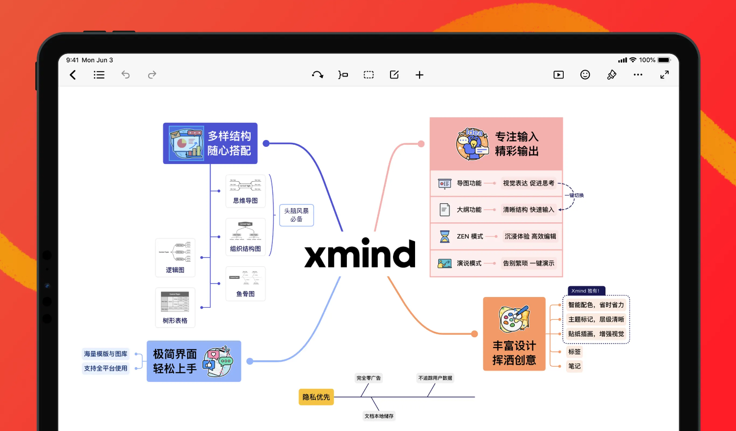 Xmind 移动端也同样拥有各种酷炫功能,iPhone / iPad / Android 各平台都出色好用。