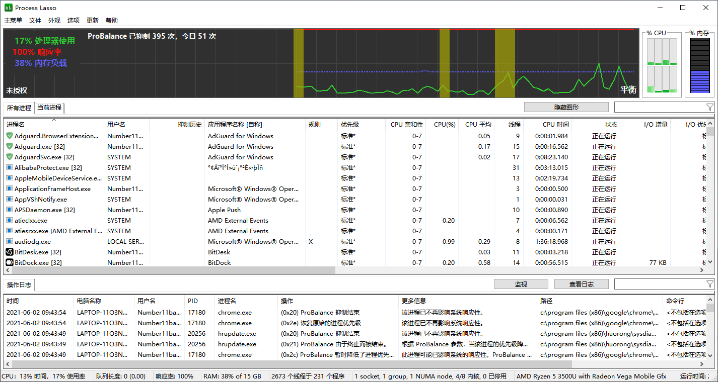 在系统优化方面,Process Lasso 进程管理软件,可通过对进程 CPU 及 I / O 负载监控、超标自动抑制、达到动态平衡系统负载。