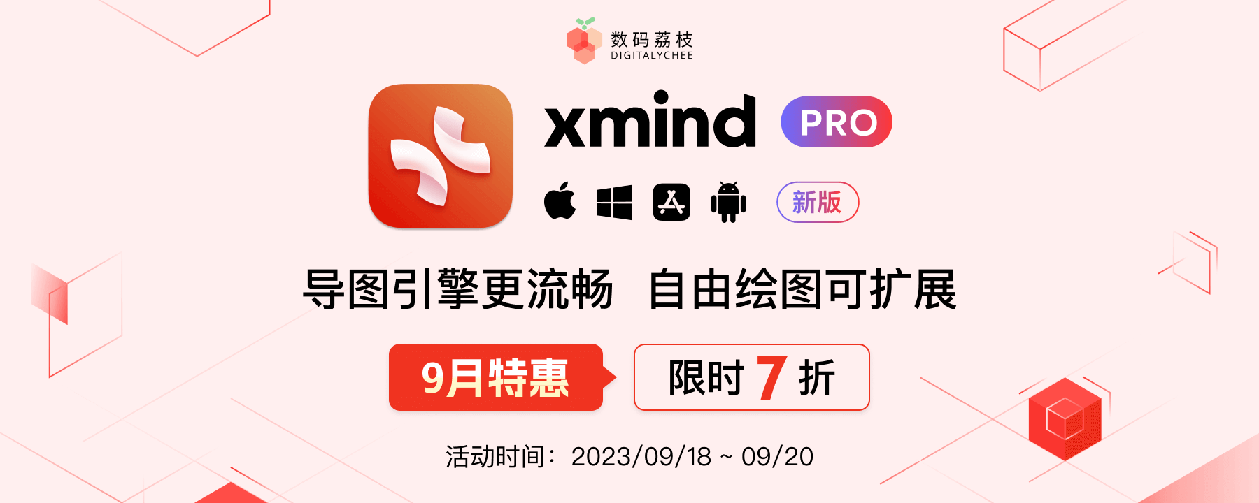 9 月 18 日至 9 月 20 日,Xmind Pro 特惠 7 折好价,仅需 165.2 元起,优惠仅三天,快戳[合作伙伴]专属优惠链接前往购买 >>
