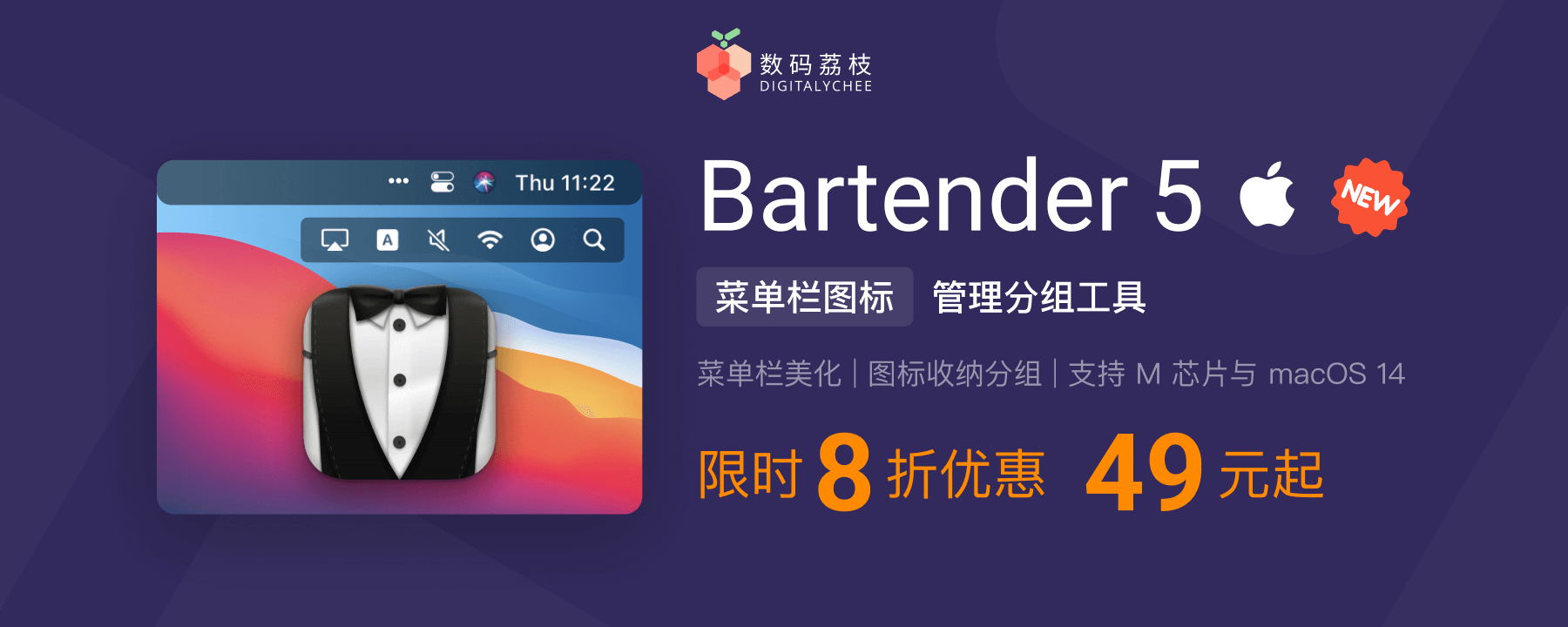 现在点击专属优惠链接购买 Mac 菜单栏图标整理神器 Bartender 5,现在 49 元起就可以入手终生版,向杂乱的菜单栏说再见!