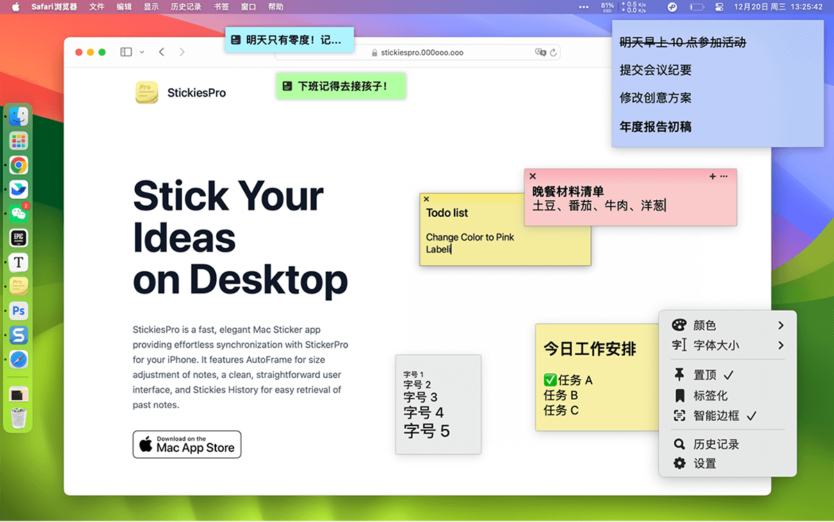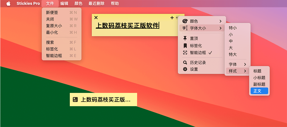 快给你的 Mac 电脑装上便签 Pro,享受一键置顶显示日程安排、备忘信息,随手记录创意灵感等便捷体验吧!
