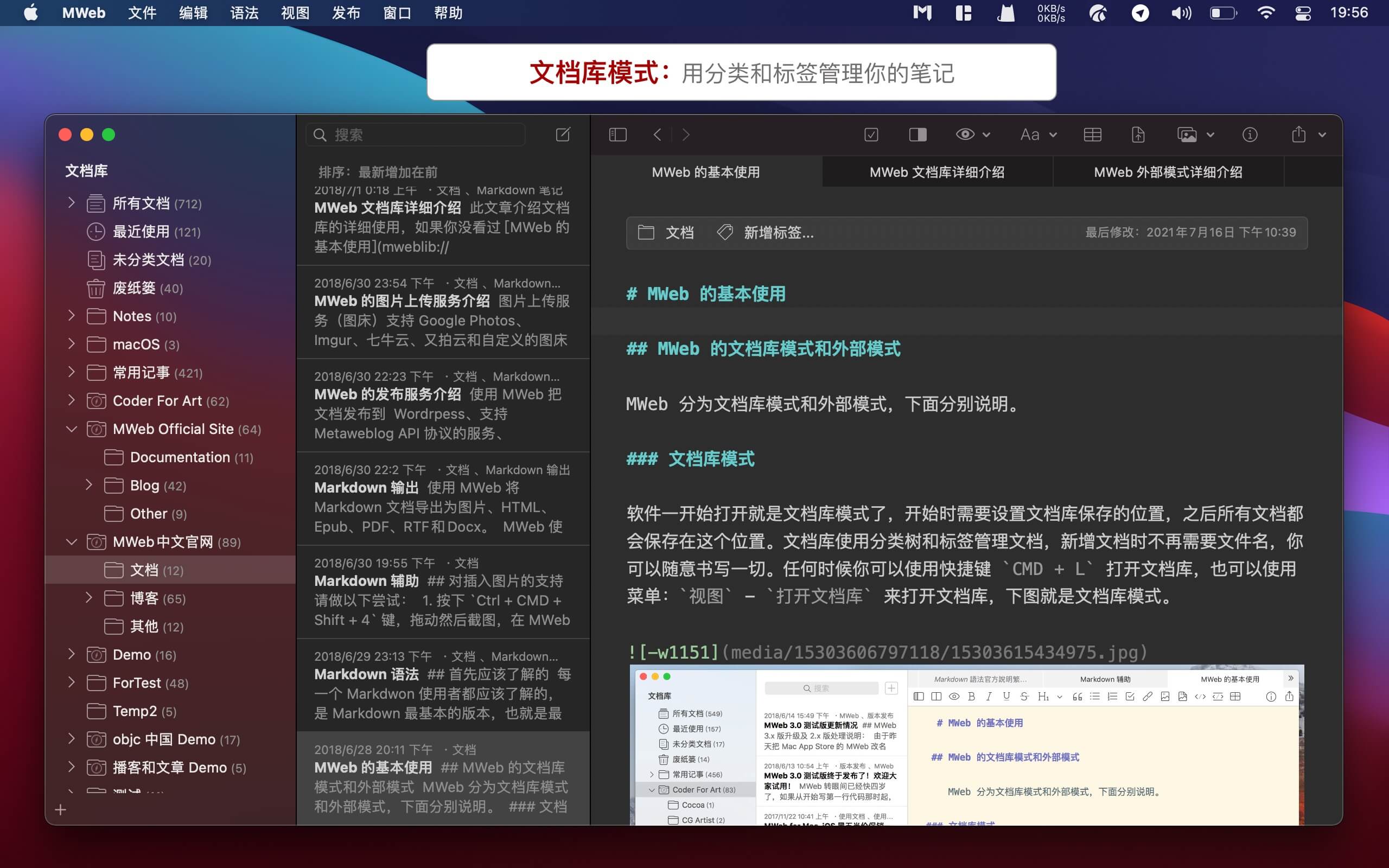 支持表格、TOC、LaTeX、代码块、任务列表、脚注等。