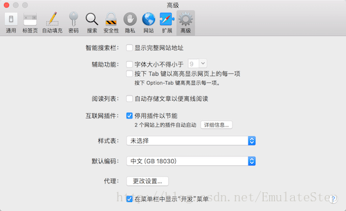 打开Safari浏览器偏好设置,(快捷键Command + ,) 如下图所示: