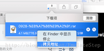 此时,点击百度云里面的文件下载,会默认Safari浏览器下载,找到下载的文件,复制文件下载链接,如下图所示: