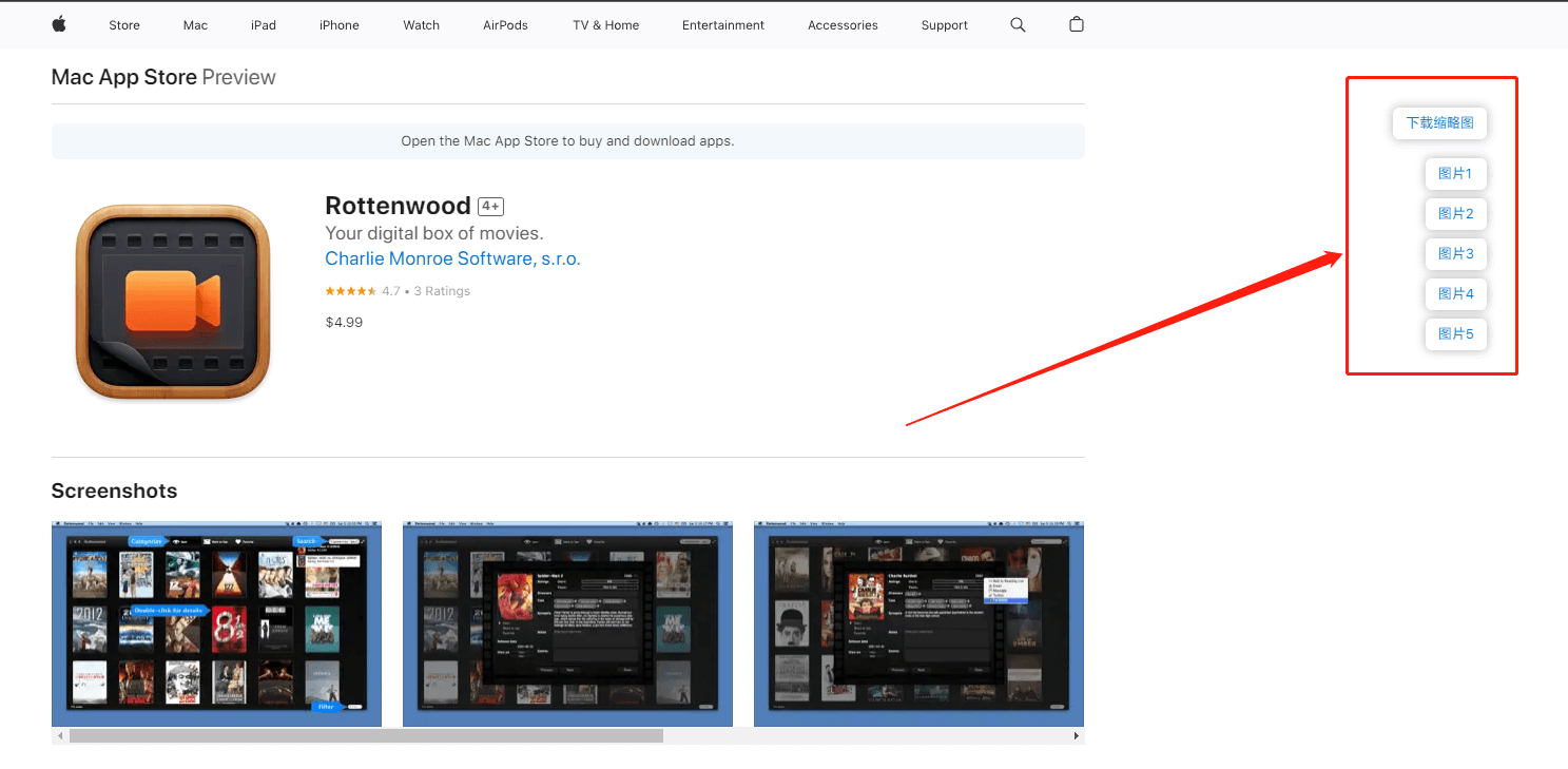 作为搬运工,需要下载Mac App Store图片,打开网站发现不能直接右键另存为保存,只能通过审查查看链接下载,这要太麻烦,于是就写了脚本可以直接右键另存为保存图片。这要保存图片就方便多了。